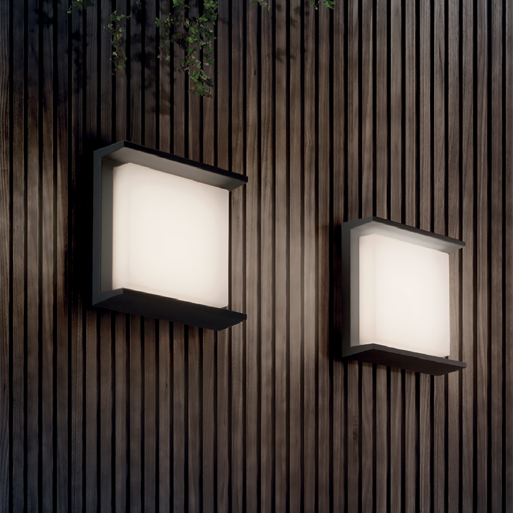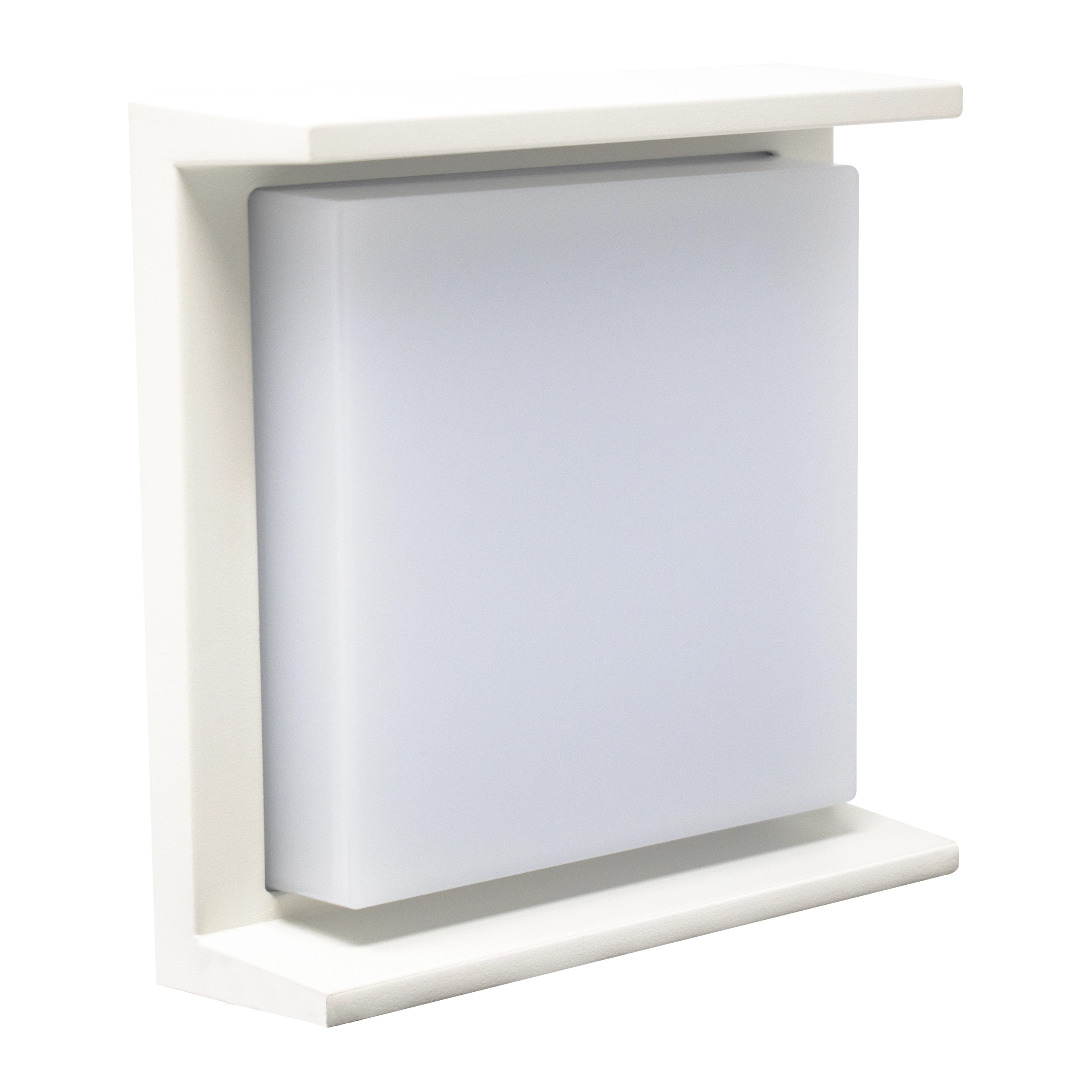 Apparecchio a LED per installazione a parete o soffitto, indicato per illuminare ambienti esterni residenziali e commerciali. Grazie allo speciale diffusore antiabbagliamento in metacrilato opale garantisce sempre un perfetto illuminamento mantenendo un elevato comfort visivo e una totale assenza di illuminazione puntiforme. Corpo e sistema di dissipazione passiva realizzato in lega di alluminio anodizzato e successivamente verniciato a polvere per fornire un’alta resistenza agli agenti atmosferici ed ai raggi UV. Sistema di fissaggio a soffitto tramite piastra in lega d’alluminio trattata e verniciata ugualmente al corpo lampada. Installabile su qualsiasi superficie piana mediante tassellatura.