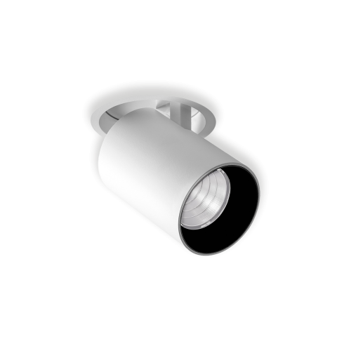 Apparecchio LED a semi-incasso, orientabile ed estraibile, di facile installazione tramite sistema a molla, perfetto per l’illuminazione d’accento in ambienti residenziali e commerciali. Versione a rasamento con diametro 40mm e lunghezza estraibile di 70mm. Corpo in profilato di alluminio, verniciato a polvere, con diametro 60mm e lunghezza estraibile di 90mm. Sistema di dissipazione passiva mediante pressofusione di alluminio. Orientabilità del corpo da 0° a 90° sul piano verticale e di 350° su quello orizzontale, il bloccaggio del puntamento avviene mediante frizione.