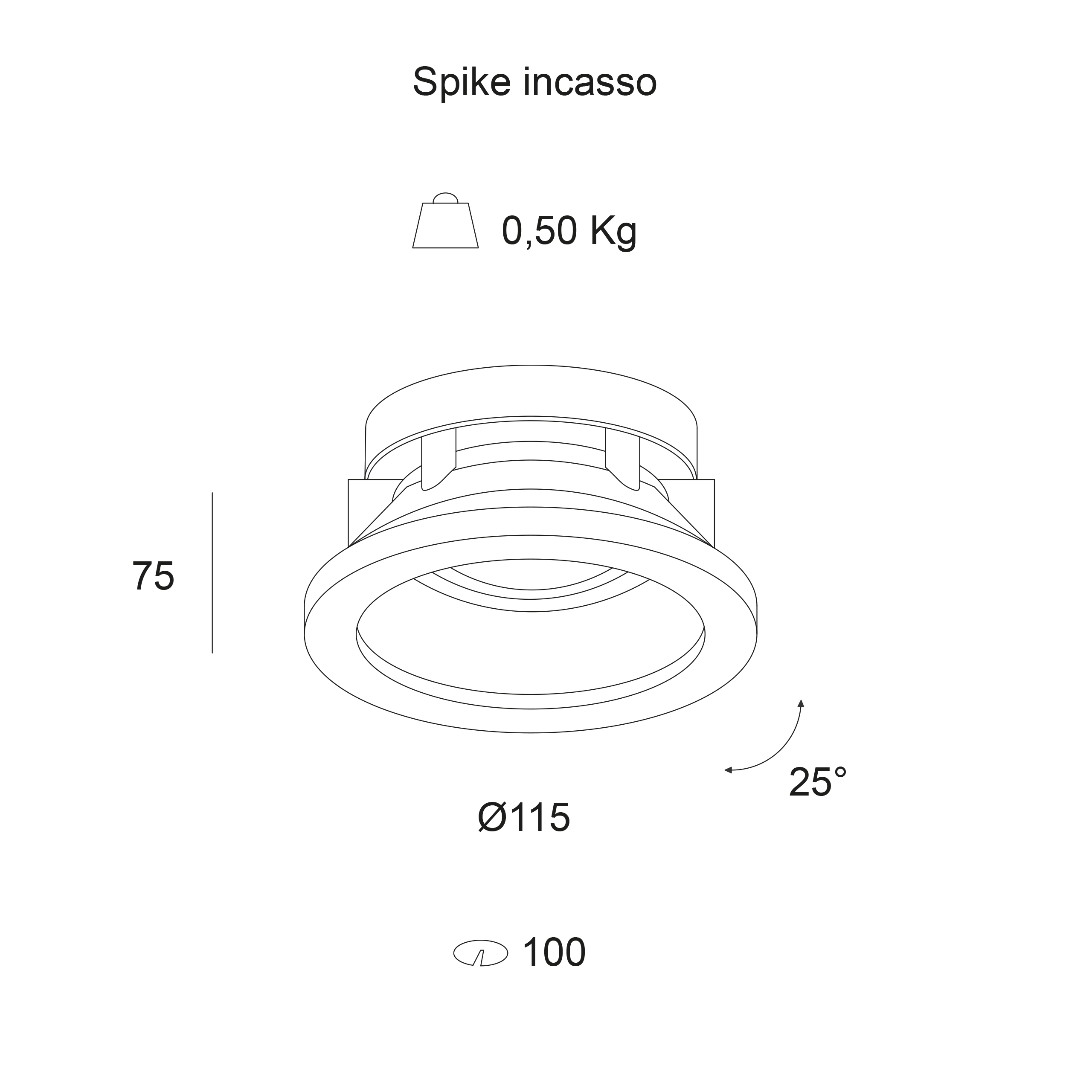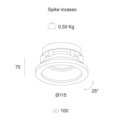 Apparecchio LED ad incasso orientabile, indicato per illuminare ambienti esterni residenziali e commerciali garantendo sempre un perfetto illuminamento mantenendo un elevato confort visivo. Corpo e sistema di dissipazione passiva realizzato in lega di alluminio anodizzato e successivamente verniciato a polvere per fornire un’alta resistenza agli agenti atmosferici ed ai raggi UV. Orientabilità del corpo da -10° a +10° sul piano verticale, il bloccaggio del puntamento avviene mediante frizione. Sistema di fissaggio a soffitto tramite viti speciali in acciaio inox complete di supporti di aggancio in lega d’alluminio. Installabile su controsoffitti in CGS di spessore da 12÷30mm. Foro di preparazione sul controsoffitto ø=100mm.