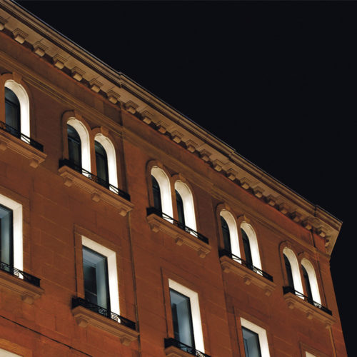 Apparecchio a LED ad emissione 180° (effetto lama) per installazione a parete e soffitto, indicato per valorizzare prospetti e materiali di rivestimento, il design minimale permette l’integrazione con qualsiasi tipo di architettura. Corpo realizzato in lega di alluminio anodizzato e successivamente verniciato a polvere per fornire un’alta resistenza agli agenti atmosferici ed ai raggi UV. Diffusore in silicone anti UV fissato mediante resinatura al corpo dell’apparecchio per permettere ad acqua e sporco di defluire, evitando la formazione di depositi che ridurrebbero notevolmente le performance dell’apparecchio. Sistema di fissaggio a parete tramite piastra in lega d’alluminio trattata e verniciata ugualmente al corpo lampada. Installabile su qualsiasi superficie piana mediante tassellatura. Viti in acciaio INOX a forte tenore di molibdeno. Guarnizioni di chiusura in silicone ricotto.